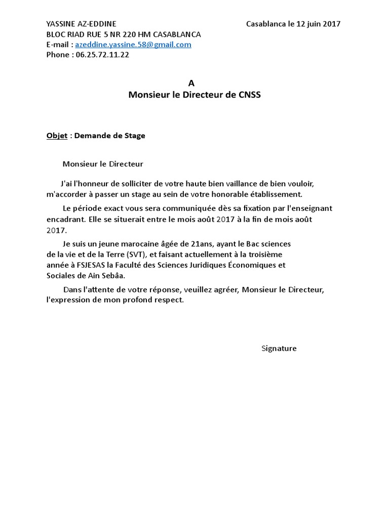 Maache Exemple De Demande De Stage