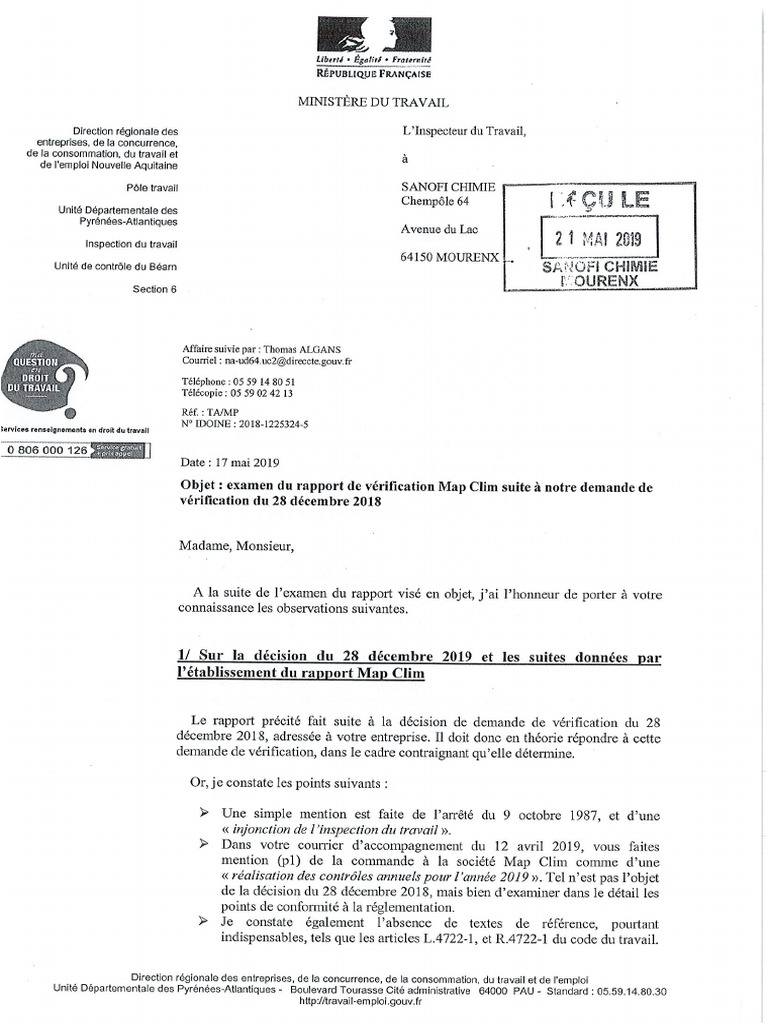 Lettre Inspection Du Travail