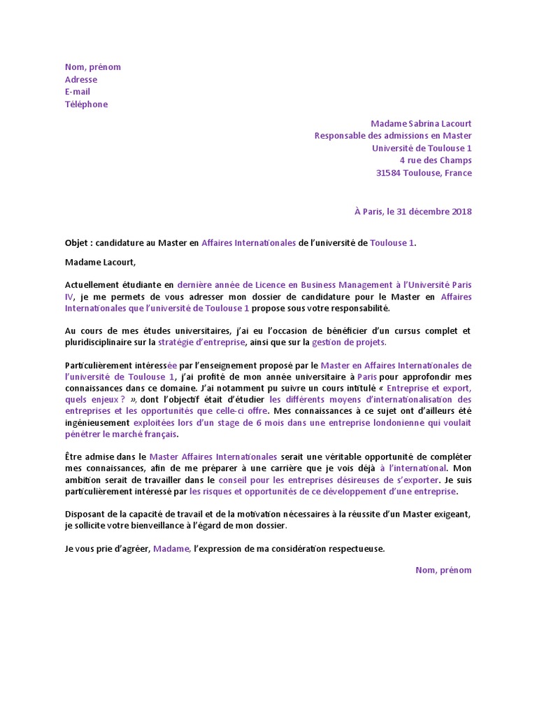 Exemple Type De Lettre De Motivation Master Affaires Enseignement Superieur