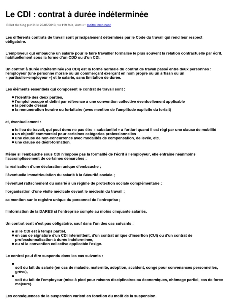 Contrat Duree Indeterminee 11682 Droit Des Affaires Droit Prive