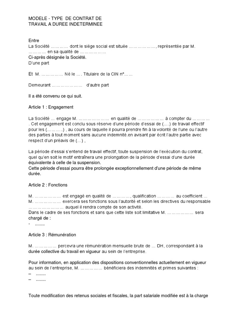 Modéle contrat de travail indeterminée CDI. Jusquà cette date il sera possible à M. 100 personnalisables et à jour des dernières lois.