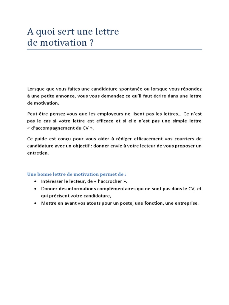 À condition évidemment que celle-ci respecte les bonnes pratiques dune lettre de motivation dont les principales sont. Il faut la considérer comme la compagne idéale de votre CV qui vient structurer votre pensée votre projet professionnel ou détudes en mettant en avant vos compétences et vos qualités. Le recruteur prononcera peut-être cette fameuse phrase Parlez-moi de vous lors de lentretien.