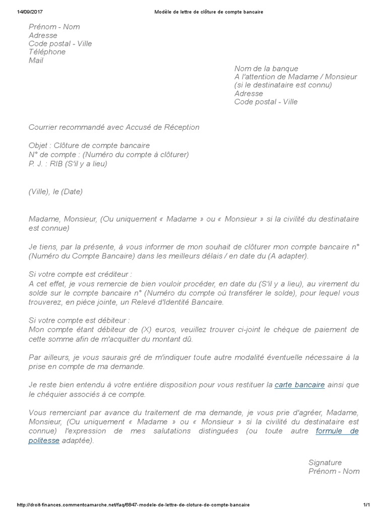 Modele De Lettre Pour La Cloture D Un Compte Bancaire