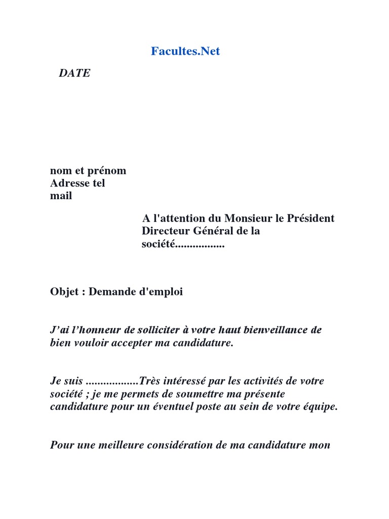 Mail De Candidature Pour Un Poste